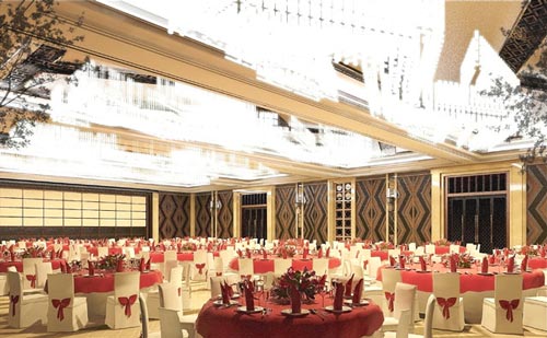 國際會議中心位于附樓四層,擁有大、中、小各種規格,配備先進設施。昆侖廳面積達2000平方米,層高10.8米,跨梁無柱設計,配備超大LED顯示屏、同聲傳譯系統,堪稱湖南第一,全國領先。國際會議中心以優良的設施、專業的服務,成為您商務洽談、旅游推介、會議慶典及各類會展活動的首選場所。 武陵國際宴會廳 鐘愛一生,無限體面。 氣派豪邁的武陵國際宴會廳位于附樓二層,可同時設宴120席,超大的喜慶空間,超豪華的宴會設施將為您的婚宴、壽宴、開業慶典等各項喜慶時刻錦上添花,帶給您眾人艷慕的榮耀光芒。 天子商務會所 遠眺天門仙境,近攬碧水柔情。 位于2層頂樓的天子商務會所,專為精英人士提供名貴茗茶、各式點心,無論是商務洽談,還是休閑放松,都是全市不二之選。