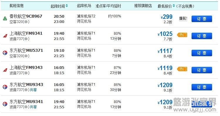 2、乘坐飛機,每天從上海發到張家界的航班有三到四躺,分別有:春秋航空9C8967、上海航空FM9341、東方航空MU5371、上海航空FM9343、東方航空MU9343和東方航空MU9341,詳圖如下: