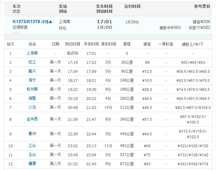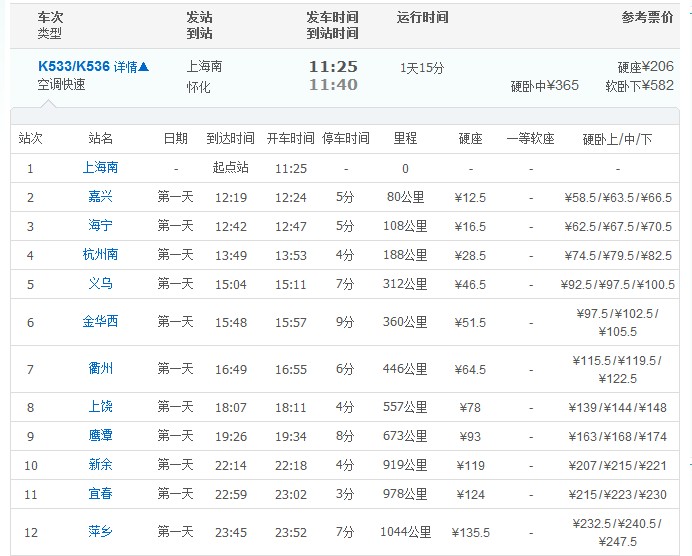 1、乘火車到張家界,上海南站有2班直達張家界的列車,一班為K533,從上海南站到張家界火車站,出發時間為11:25到第二天早上07:53,全程20小時28分;另一班K1373,是從上海南站到張家界火車站,出發時間為17:01出發到張家界為第二天13:59分,全程20小時58分;詳細列車時刻表為: