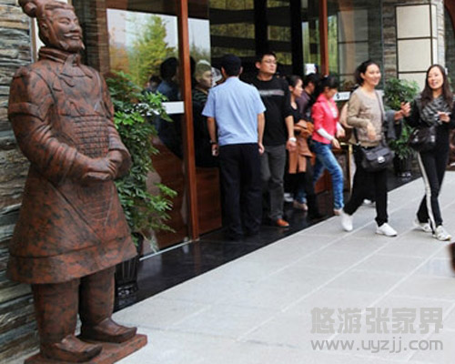 張家界“雷人”事很多!10月12日,一條題為《黃龍洞音樂廳太牛B,請山寨“兵馬俑”當門衛》的帖子在紅網論壇備受關注。帖子內容稱,張家界黃龍洞景區10月10日起,用兩尊仿制的“兵馬俑”在哈利路亞音樂廳當門衛。