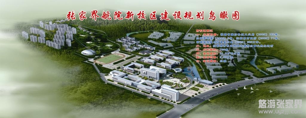 張家界航空工業職業技術學院整體搬遷項目是一項省、市重點工程,新校區位于永定區大庸橋辦事處熱水坑居委會,占地780畝,總投資約4億元,將建圖書館與行政辦公樓、教學樓、學生公寓、學生食堂、學院實訓中心及綜合服務設施等。建成后的新校區可滿足7000人的辦學規模,將從根本上改善學院辦學條件,拓展學院發展空間,并成為展示張家界的一個窗口。